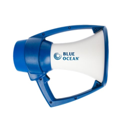 The Blue Ocean megaphone is the the latest product developed by Nielsen Kellerman, the manufacturer of all Kestrel weather meters. Designed originally for the rowing industry, these megaphones have become extremely popular with military, fire and police departments, and others who need to be heard by a large group of people. The Blue Ocean is the most durable, weather resistant bullhorn you will find. It was uniquely designed and carefully built to defy severe weather that commonly ruin other megaphones; corrosion, cracking, breaking, and water damage. This megaphone is waterproof, and actually floats if accidentally dropped in the water. The two handles on the Blue Ocean increases the durability, as well as make it easier to handle than the typical megaphone.