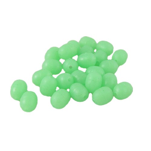 Glow in the dark green soft plastic egg shaped beads, can be use on lures, hooks or on your line just above the hook for added attraction while night fishing or deep water fishing. Features a hole in the center for fishing line to thread through. Helpful fishing tackle, will bring more convenience to anglers.