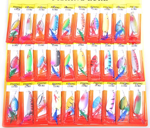 Piscifun 30pcs Crankbaits Spinner Tackle Baits Lures Lot Fishing Lure Set For Trout Bass Salmon Freshwater Saltwater With Metal Hooks And Feather