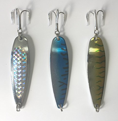Here are 12 pieces of brand new 3oz Crocodile Spoons, 4 each color. These Spoons have been used successfully in various freshwater and saltwater applications for bass, yellowtail, barracuda, bonito, yellowfin, even halibut with these versatile lure.