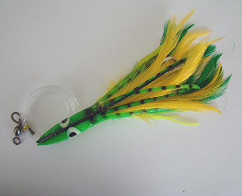 4.5″ Tuna Clone Feather Rigs – Yellow/Green – 6 pcs – Item # 122