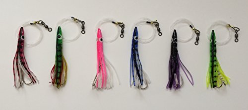 Here are 6 pieces brand new 4.5" rigged Tuna Clone rigs. The Tuna Clones are trolling skirts commonly used when trolling for Albacore on the west coast. Tuna Clones are widely considered the best producer for all species of Tuna including the aforementioned Albacore which are now almost exclusively trolled for with the clones. These weighted rigged Tuna Clones, are designed to be run just below the surface when employing normal trolling speeds.