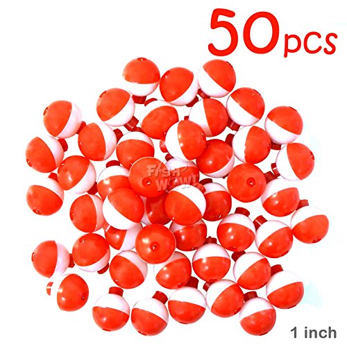50pcs Fish WOW! 1″ Fishing float Snap-On Round Floats Push Button Float Bobbers Red White