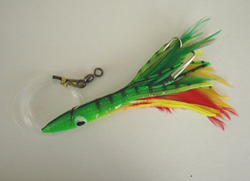 Here are 6 pieces brand new 6" rigged Tuna Clone Feather rigs. The Tuna Clones are trolling skirts commonly used when trolling for Albacore on the west coast. Tuna Clones are widely considered the best producer for all species of Tuna including the aforementioned Albacore which are now almost exclusively trolled for with the clones. These weighted rigged Tuna Clones, are designed to be run just below the surface when employing normal trolling speeds.
