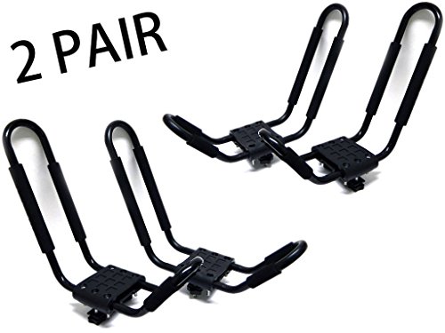 9sparts® 2 Pairs J Bar Kayak Canoe Inflatable Boat Wakeboard Waveboard Paddleboard Snowboard Ski Roof Rack Carrier Car SUV Truck Jeep Roof Top Mount With Straps