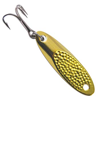 The unique design of the Acme Kastmaster hammered spoon produces a wild, erratic action without line twist, plus the hammered finish reflects light and adds vibration to attract everything from trout to panfish in all water conditions. Machined from solid brass with a highly aerodynamic shape for impressive casting distances. It won't break, bend or corrode, and it retains its luster even after repeated exposures to saltwater. Per each.