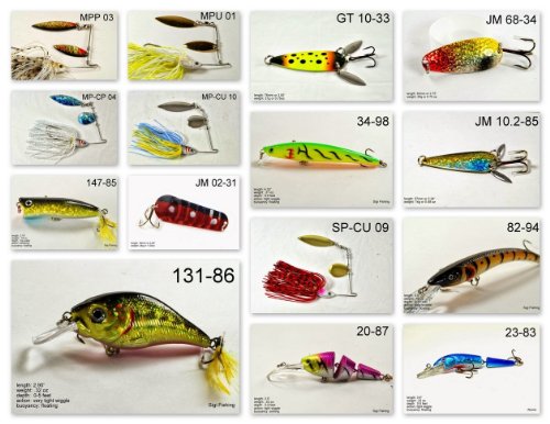 - Lures are selected based on our knowledge of color, size and food source for the game fish in the area