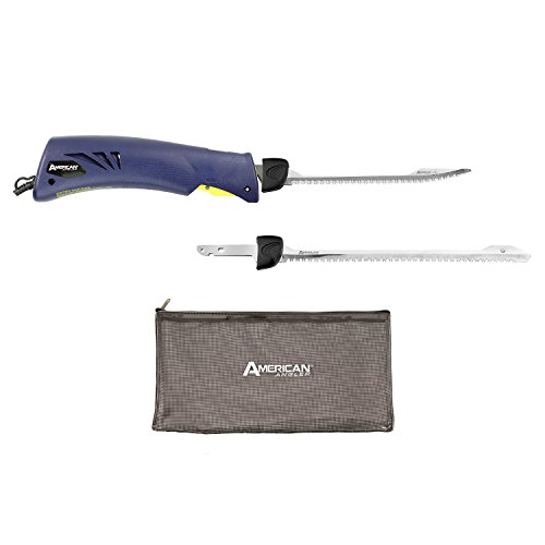 The Classic EFK is a new spin on an "Old School" American Angler Fillet Knife. This knife offers the classic style handset with a high performance motor and gear system that provides optimum blade speed and precision cutting. The Classic EFK features a state-of-the-art vent design that minimizes heat build-up and comes with a convenient carrying bag that allows proper venting to prevent odor and corrosion build-up. Includes 8" Saltwater Blade, 10" Saltwater Blade, Handset, and Carrying Bag.