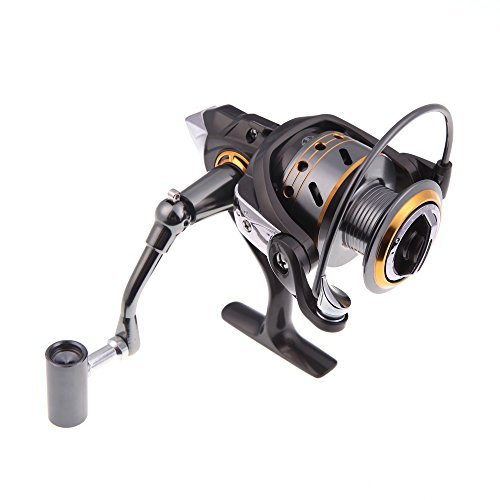 - Fishing Reel: This deluxe spinning fishing reel is left and right hand interchangeable. It features durable metal spool, comfortable ABS folding handle and high-tensile graphite body and instant anti-reverse system. Line capacity (mm/m): 0.18mm / 245m, 0.20mm / 200m, 0.25mm / 125m.