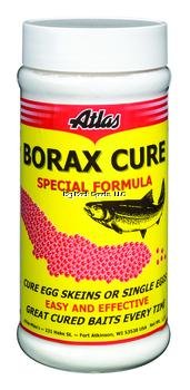 Cure your own salmon or steelhead eggs with our Special Borax Formula. Preserves natural fish attracting scents from fresh roe. Cured eggs can be kept in a refrigerator for months or up to a year if frozen. Complete easy to use instructions on each container. Easy to apply with our new shaker top.