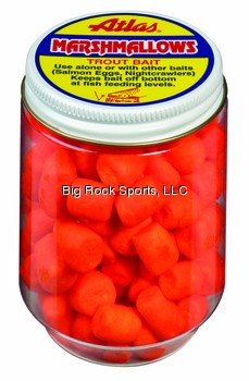 Atlas and Mike's Marshmallows are specially treated and scented to attract trout. They are easy to use and can be fished alone of in combination with other baits like salmon eggs or night crawlers. In addition to attracting trout, mallows float bait off the bottom away from weeds, rocks and other snags, holding bait at fish feeding levels. Large selection of popular color/scent combinations to choose from.