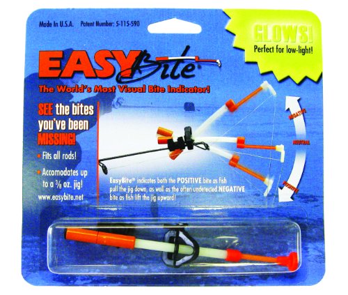 Ice anglers are catching more fish because they are seeing the bites they had previously been missing with the easy Bite strike indicator from Beaver Dam. The easy Bite system fits all rods and indicates both the positive Bite as fish pull the jig down, as well as the often undetected negative Bite as fish lift the jig upward. The easy Bite accommodates up to a 3/8 oz jig and is glow in the dark allowing anglers to limit out during low light conditions.