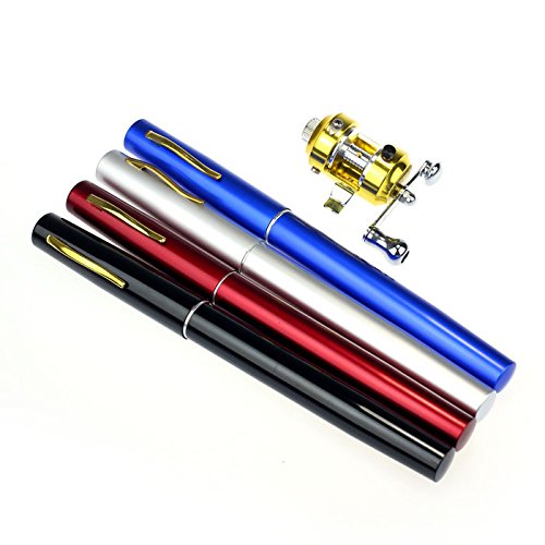 Blue Mini Pocket Aluminum Alloy Fish Pen Fishing Rod Pole with Baitcasting Reel–Ideal Fishing Set for Fishing Enthusiast or Collectors