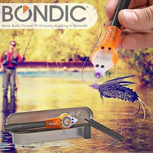 - Fly Tying Kit includes : Bondic 4gram tube of liquid plastic with applicator and one LED UV Light