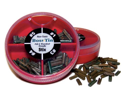 Boss Tin gears its accessories for fly fishing to be simple, quick, affordable and ultimately to be a superior performance product that is environmentally friendly. We understand how important it is to you and all fishermen to have the best fishing experience each and every day you are on the water. We look at such things as the splash effect our weights product, if they are easily detected by the fish or if they sink in the water at the same rate as the out-dated toxic lead shot. Boss Tin 4-Way Stix are lead free, camouflaged cylinder shaped weights with little or no splash effect when it hits the water. They also do not get caught up in the weeds as much and only BossTin has them. Sizes are #1, #3, #4 and #5.
