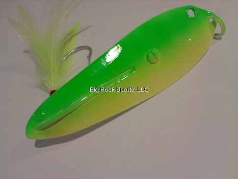 Crippled Alewive Weighted Spoon with Feather, Green/Yellow