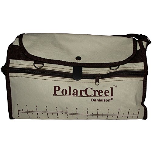 Occasionally soaking this canvas Danielson polar Creel will allow evaporation to keep fish cool and fresh. This Creel pouch has a zippered pocket features a pull-out vinyl liner for easy cleaning. A protective apron keeps the wearer dry. Measures 14" x 9".