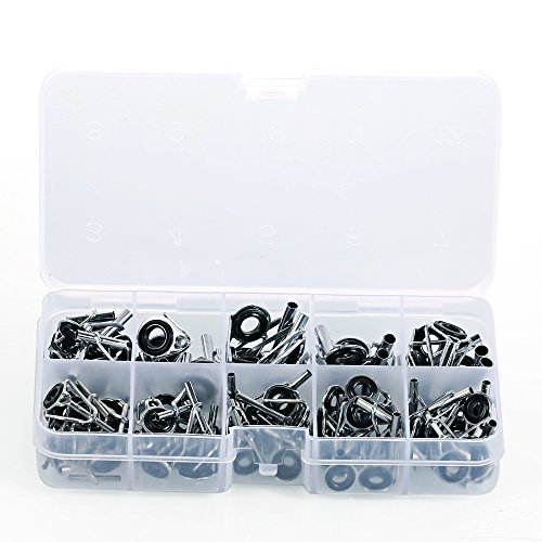 DGCUS 80Pcs Fishing Rod Pole Guides Tips Top Eye Rings Repair Kits 10 Sizes