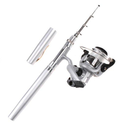E-Bro®Mini Aluminum Portable Pocket Pen Shape Fishing Fish Rod Pole + Reel Silver