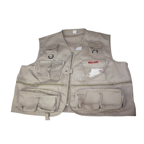 This Eagle Claw Fishing vest is made of 100% cotton. Has 16 pockets and is Khaki in color. Great for Fly Fishing!