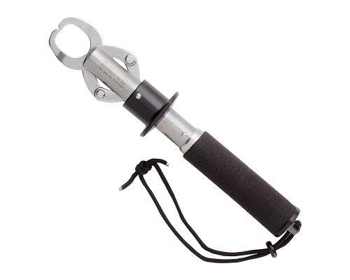 The BogaGrip is a high quality fish landing, weighing, and handling device. Its easy, one-handed operation allows the angler to grasp a fish's lower jawbone, lift the fish out of the water, take it's weight (up to 60 lbs.), and successfully release it with minimal handling and trauma. The BogaGrip is made of stainless steel and therefore is saltwater resistant, 10 3/4" in length, weighs only 1 lb, and is made in the USA.