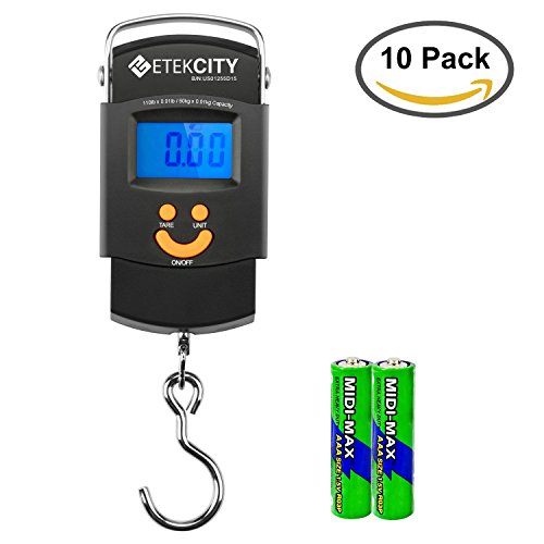 Etekcity Digital Postal Hook Fishing Scale, Backlit LCD Display, 2 AAA Batteries Included, 110lb/50kg, 10 Pack