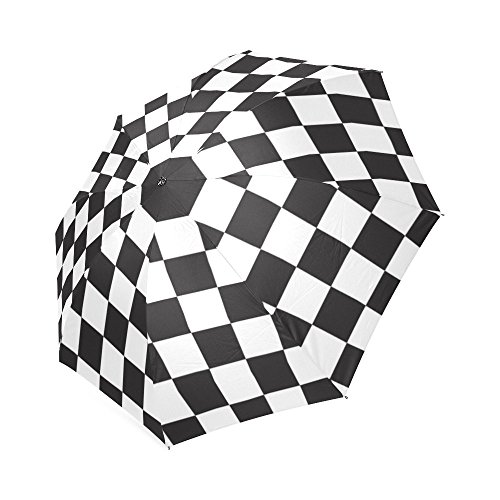 Fashion Black / White Plaid & Checked Gingham Pattern Compact Umbrella Folding Travel Rain/Sun Umbrella Anti-uv, Windproof Rainproof Umbrella