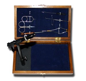 The Fireside Fly Tying Tool Set features our Super AA Vise with a base mounted in a handsome wooden case.This set has all the tools needed to start tying flies. The Super AA Vise has hardened steel jaws with lever action that hold a wide variety of hooks. Tools included: -Super AA Vise with Base -Collar Bobbin -Bobbin Threader -Scissors -Large English Hackle Pliers -Bodkin -Small Standard Whip Finisher