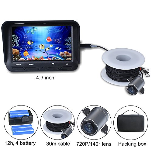 Fish Finder Camera 720P 2MP Underwater Video Fishing Camera System Kit 4.3 Inch LCD Monitor 12h Working Time 30m Cable for Boat,Kayak,Ocean,Ice,Lake Fishing