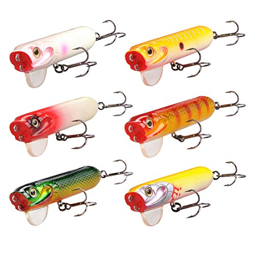 FishingSir 6PCS Lot Surface Warer Torpedo Flap Popper Lures Kit Floating Plastic Fishing Hardbaits 95mm 23g (approx. 3-3/4 inches 4/5 oz.)