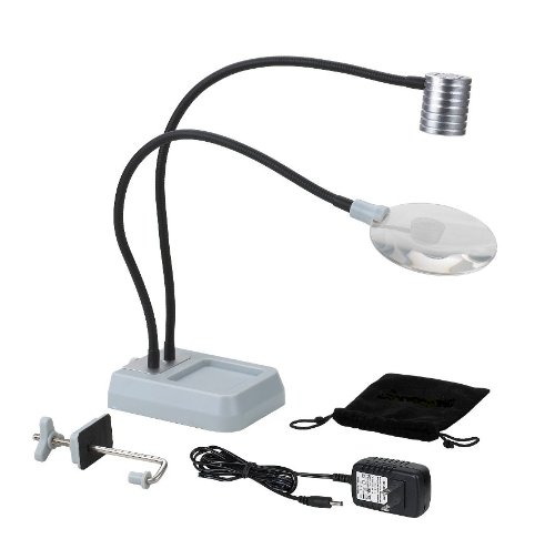 Finally a LED light that is very bright and has a wide enough illumination angle to tie with. Comes complete with magnifier, base and C-Clamp. 2X Magnifier with spot.