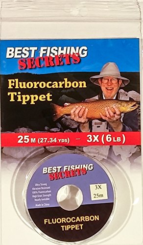 At Best Fishing Secrets, our Fluorocarbon Tippet is stronger at the same diameter, has less stretch, and results in more sensitivity and stronger hooksets than monofilament. It retains less memory, is nearly invisible to fish, sinks faster in the water column, and is more durable and abrasion resistant due to the hardness of the Fluorocarbon.