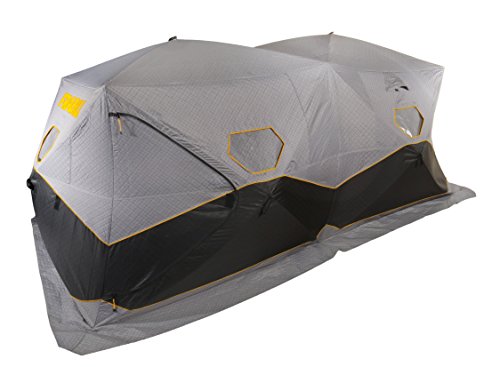 The Bunker series is Frabill's next generation of over-sized hubs. Building on the success of earlier models, these new designs feature 30% more fishable space with light-weight roof insulation and full-thermal side insulation to keep in the heat for added comfort.