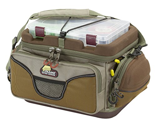 3600 Guide Series tackle bag. With the new Plano Guide Series Tackle Bag, your favorite baits and lures are always ready and accessible. A patented molded top conveniently holds a ProLatch StowAway storage box to organize all of your frequently used tackle. Down below, this compact bag holds an additional set of StowAways that can be called up whenever needed. Add to it a rugged waterproof base and padded side pockets for your sunglasses. you'll find no fishing trip will be the same without it. The 3600 molded top with elastic tie down strap holds one 3600 series StowAway for quick access to your favorite baits and includes six 3600 Series ProLatch StowAway boxes. Features: Molded impact-resistant, waterproof base, Two padded pockets for sunglasses or other valuables, cavernous easy-access dual-compartment side pockets, clear, zippered pocket under top cover, PVC mesh pocket on back with adjustable elastic, pliers pocket and wallet sleeve between end pockets and main body. Color: Tan/Brown. Model 466310 Dimensions: 17"L x 10.25"W x 10.25"H.