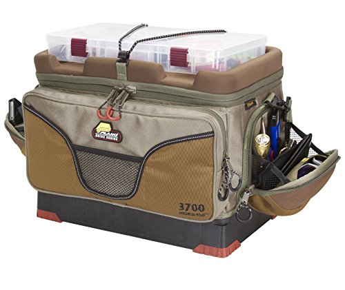3700 Guide Series tackle bag. With the new Plano Guide Series Tackle Bag, your favorite baits and lures are always ready and accessible. A patented molded top conveniently holds a ProLatch StowAway storage box to organize all of your frequently used tackle. Down below, this compact bag holds an additional set of StowAways that can be called up whenever needed. Add to it a rugged waterproof base and padded side pockets for your sunglasses. you'll find no fishing trip will be the same without it. The 3700 Hydro-Flo molded top with elastic tie down strap holds one 3700 series StowAway for quick access to your favorite baits and includes six 3700 Series ProLatch StowAway boxes. Features: Hydro-Flo impact- and skid-resistant base, Molded impact-resistant, waterproof base, Two padded pockets for sunglasses or other valuables, cavernous easy-access dual-compartment side pockets, clear, zippered pocket under top cover, PVC mesh pocket on back with adjustable elastic, pliers pocket and wallet sleeve between end pockets and main body. Color: Tan/Brown. Model 467410 Dimensions: 20"L x 13"W x 11.5"H.