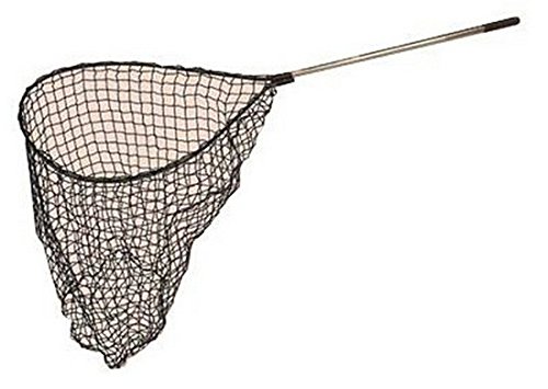 Elastic fibers and flat-bottomed design combined in a net that's a favorite for bass walleye and trout. Tough netting of stretchy molded thermoplastic rubber expands naturally to fit a fish's size and weight. Knot-free surfaces for less fish damage. Flat bottom means easy removal fewer snags.