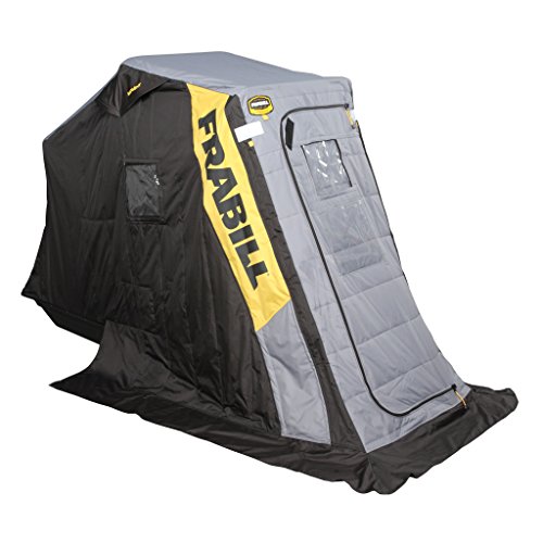 Okay, we know what you're thinking.it's funny too. But it's not the inspiration for our premium one-man. The Frabill Commando sneak attacks with its fixed pole quick-set architecture. Go Commando this winter. This 1 person shelter fits a power auger plus gear. It has over 11 square feet of fishable space, 1 deluxe padded swivel boat seat with built-in tackle pocket, front zippered door, MaxVent air exchange system, premium 3-ply quilted fabric for extreme heat retention, insulated fabric eliminates condensation and reduces noise and wind whip. Set up: 110"(L)x33"(W)x66"(H), folded: 58"(L)x33"(W)x18"(H). Weight 78 lbs.