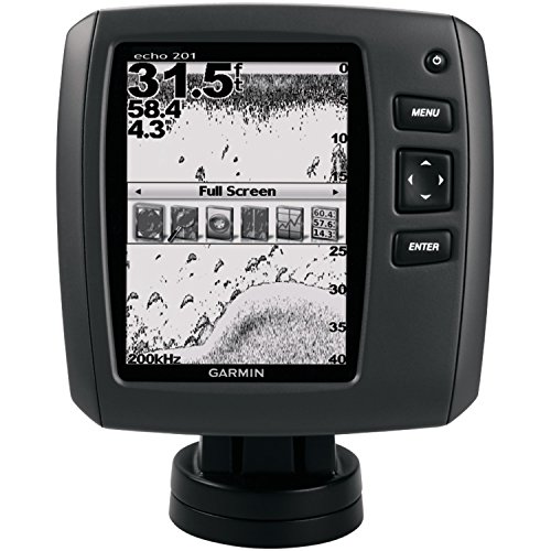 The Powerful, simple-to-use echo 201 has the advanced sonar features you’d expect to find only on much higher-priced units. The built-in Garmin advanced HD-ID sonar with or without a 77/200 kHz transducer (supports a 50/200 kHz transducer, sold separately) gives you excellent target separation and fish arch definition on the crisp 5-inch, grayscale display. Its sonar transmitter with 2,400 W peak-to-peak Power output dives down to a maximum depth of 1,750 feet - and Smooth Scaling graphics provide uninterrupted imagery when switching between depth-range scales. Comes ready-to-go with a quick-release tilt/swivel mount and transom/trolling transducer mount kit. So you can get right to fishing.
