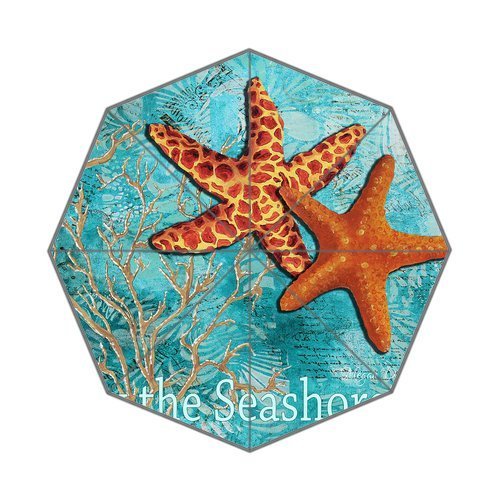 Generic Custom Painting Starfish Sea Plant Ocean Printed Auto Foldable Sunny Rainy Umbrella 100% polyester