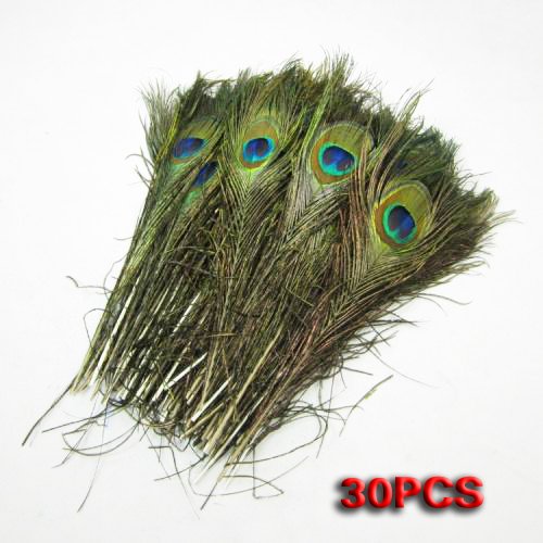 Pack of 30pc Natural Peacock Feathers 10-12''.