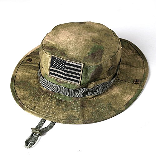 Gmilk High Quality Military Tactical Head Wear/Boonie Hat Cap For Wargame,Sports,Fishing &Outdoor Activties Multicam Green with USA flag Patch