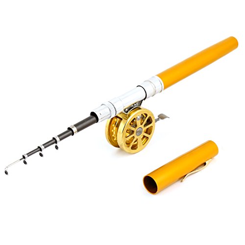 - 5 sections telescopic, pocket pen design, gold tone fishing spinning reel.