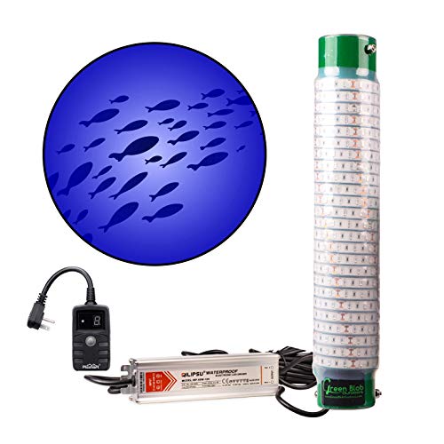 Green Blob Outdoors New Blue Fishing Light (Blue), Underwater, w/ 30ft Cord, LED, Fish Attractor, Crappie, Snook, Bass, Catfish Lure (15,000 3-Prong Plug, Blue w/Timer)