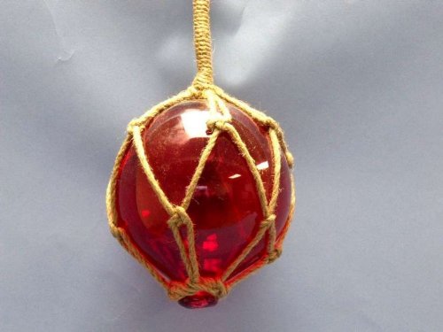 A glowing modern recreation of a nauticalfishing classic this red nautical glass float with size 8" is the perfect piece of nautical wall art gorgeous whether in your home or office. enjoy the charming inner warmth as lights play through the glass bubble perfectly contrastedthe authentic fishing rope holding it in place. mesmerizingenchanting enjoy the historic wonder brilliant style of this red nautical glass float 8 glass float each every day. Features handcrafted blown glass float. authentic fishing rope. classic yet modern style.
