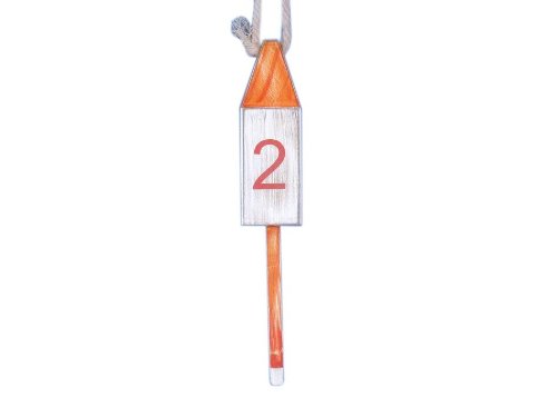 Handcrafted Nautical Decor Wooden Vintage Orange Number 2 Squared Buoy, 15″
