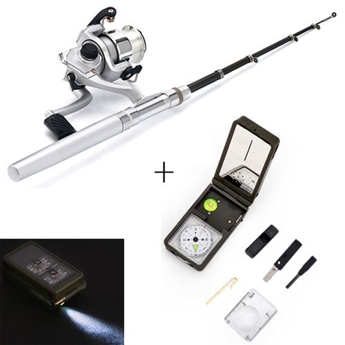 HDE Mini Portable Telescopic Pocket Pen Fishing Rod and Reel w/ 10-in-1 Multifunction Survival Tool
