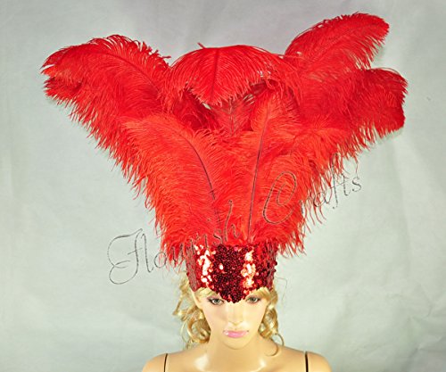 Hot-fans Ostrich Feathers Sequins Open Face Headdress, Red