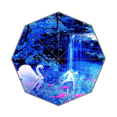 Hot Gift New Custom Unique Umbrella Swan Waterfall Flowers Portable Foldable Umbrella