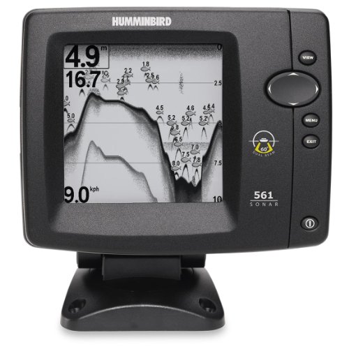 The Humminbird 561 Fishfinder features a high resolution, 12 level grayscale 320V x 320H 5-Inch display, and a dual beam 82/200KHz sonar with 300 Watts RMS power output. Features include Freeze Frame, Real Time Sonar window, selective Fish ID, echo enhancement, split screen zoom, and wide or narrow cone split screen. The user-friendly technology includes custom digital readouts, large digit view, quick disconnect mounting, triplog, and X-press menu system. The package includes a transom mount transducer, installation hardware, and owner-Feets manual. Dimensions: 7.25-Inch W x 7-Inch H x 4-Inch D. One year parts and labor warranty.