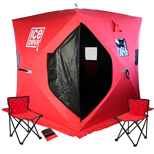 Ice Devil Portable Ice Fishing Shanty Shelter + Chairs + Anchors
